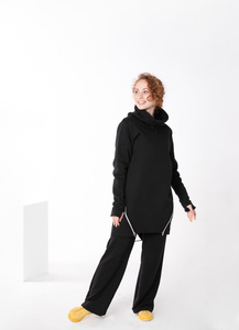 - Długość boczna - mierzymy wzdłuż bioder, od talii, do stóp.