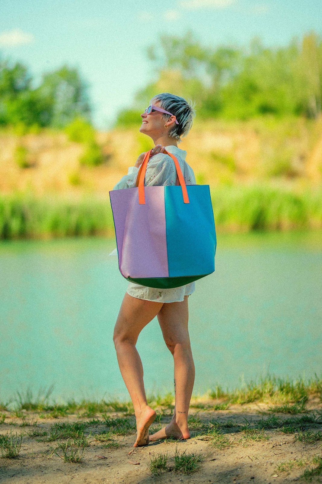Duża torba kolorowa , torba plażowa, skórzana torebka , pastelowe kolory