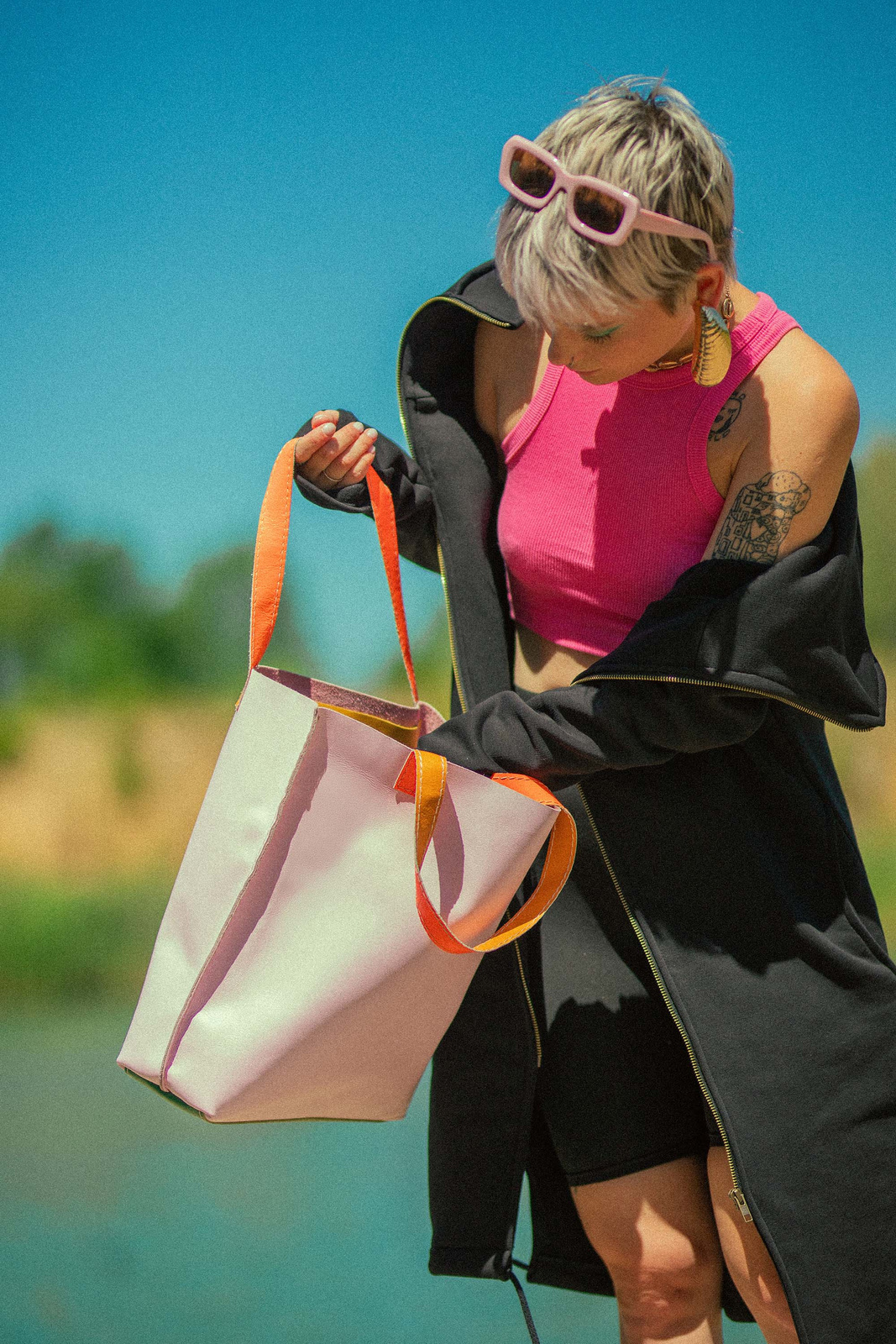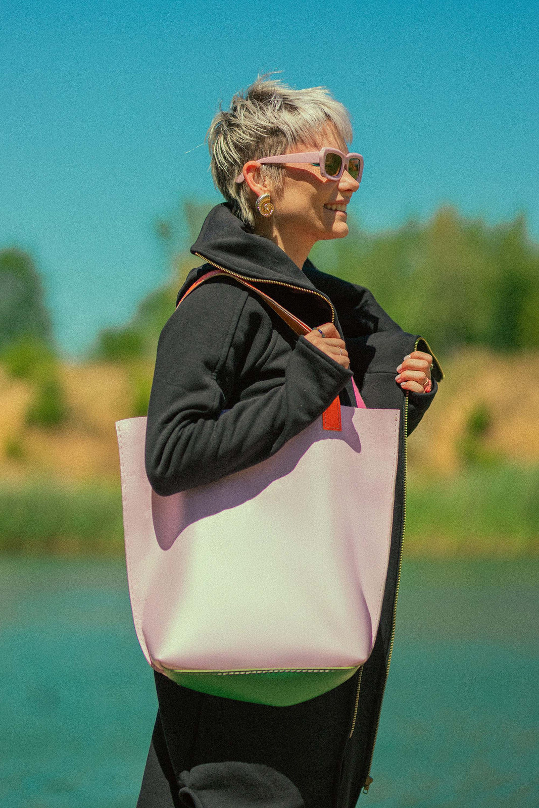 torba pudrowy róż, worek skórzany , torba na laptopa, na zakupy, torebka na ramię ,torebka skórzana ręcznie robiona